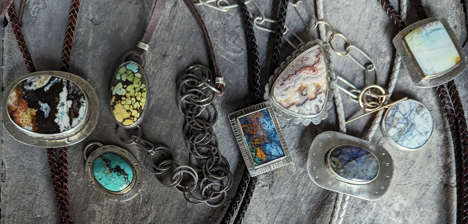 Combining this love of “emotional geology” with the process of silversmithing, I work to create pieces that bring out the natural beauty of the stone and its journey through unique, complimentary settings rich with dynamic color and pattern. Each one-of-a-kind batch tells a story common to our human experience—feeling the cold darkness of the winter solstice, being in the middle of a midwestern winter and longing for the beach, laying on one’s back reading the clouds on a summer’s day—creating connection around the everyday beauties and struggles of life.
