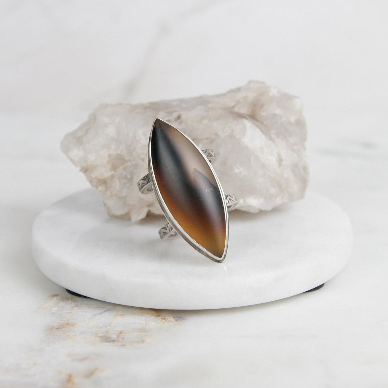 Combining this love of “emotional geology” with the process of silversmithing, I work to create pieces that bring out the natural beauty of the stone and its journey through unique, complimentary settings rich with dynamic color and pattern. Each one-of-a-kind batch tells a story common to our human experience—feeling the cold darkness of the winter solstice, being in the middle of a midwestern winter and longing for the beach, laying on one’s back reading the clouds on a summer’s day—creating connection around the everyday beauties and struggles of life.