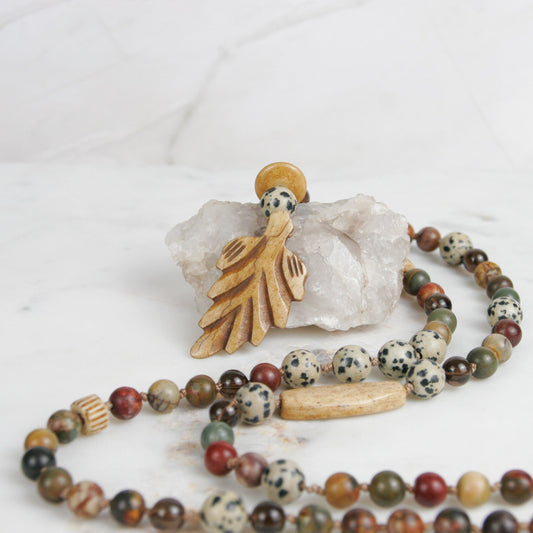 Red Cherry Creek Jasper Necklace with Smokey Quartz and Dalmatian Jasper Accents