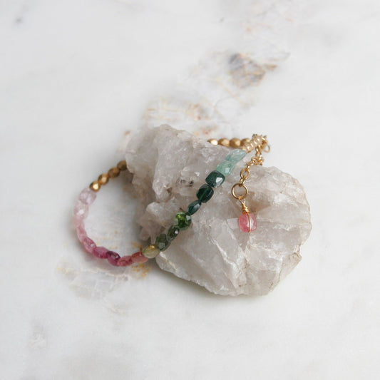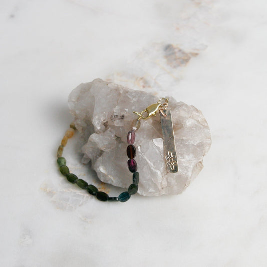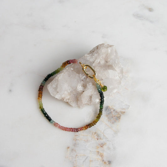 Rainbow Tourmaline and Gold Fire Glass Bracelet