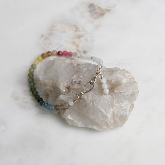 Rainbow Tourmaline and Silver Fire Glass Bracelet