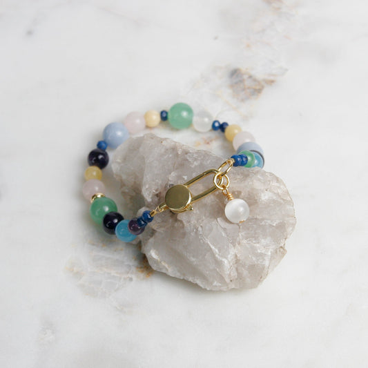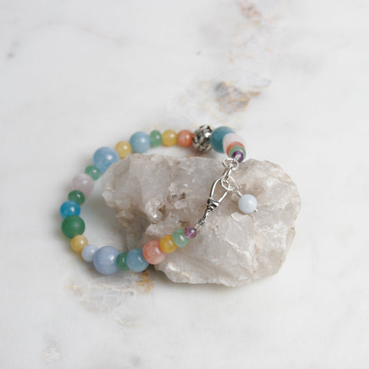 Gold Fire Glass and Rainbow Fluorite Bracelet