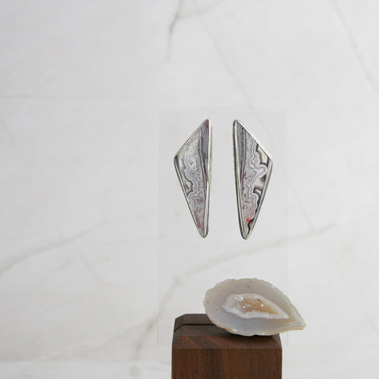 Large Triangle Crazy Lace Agate Post Earrings