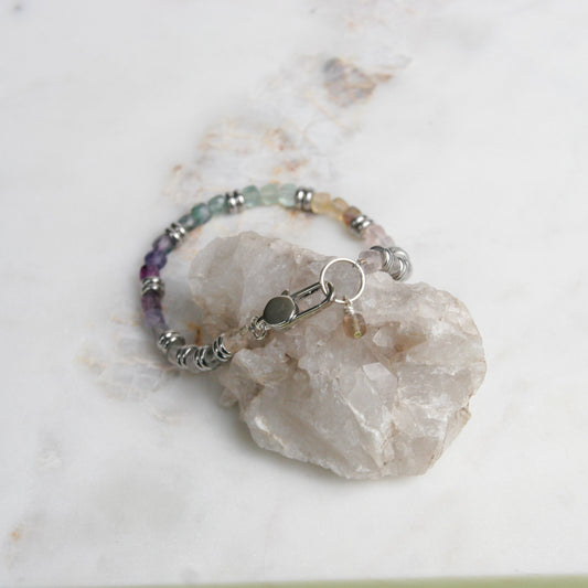 Sterling Silver Rainbow Fluorite Bracelet
