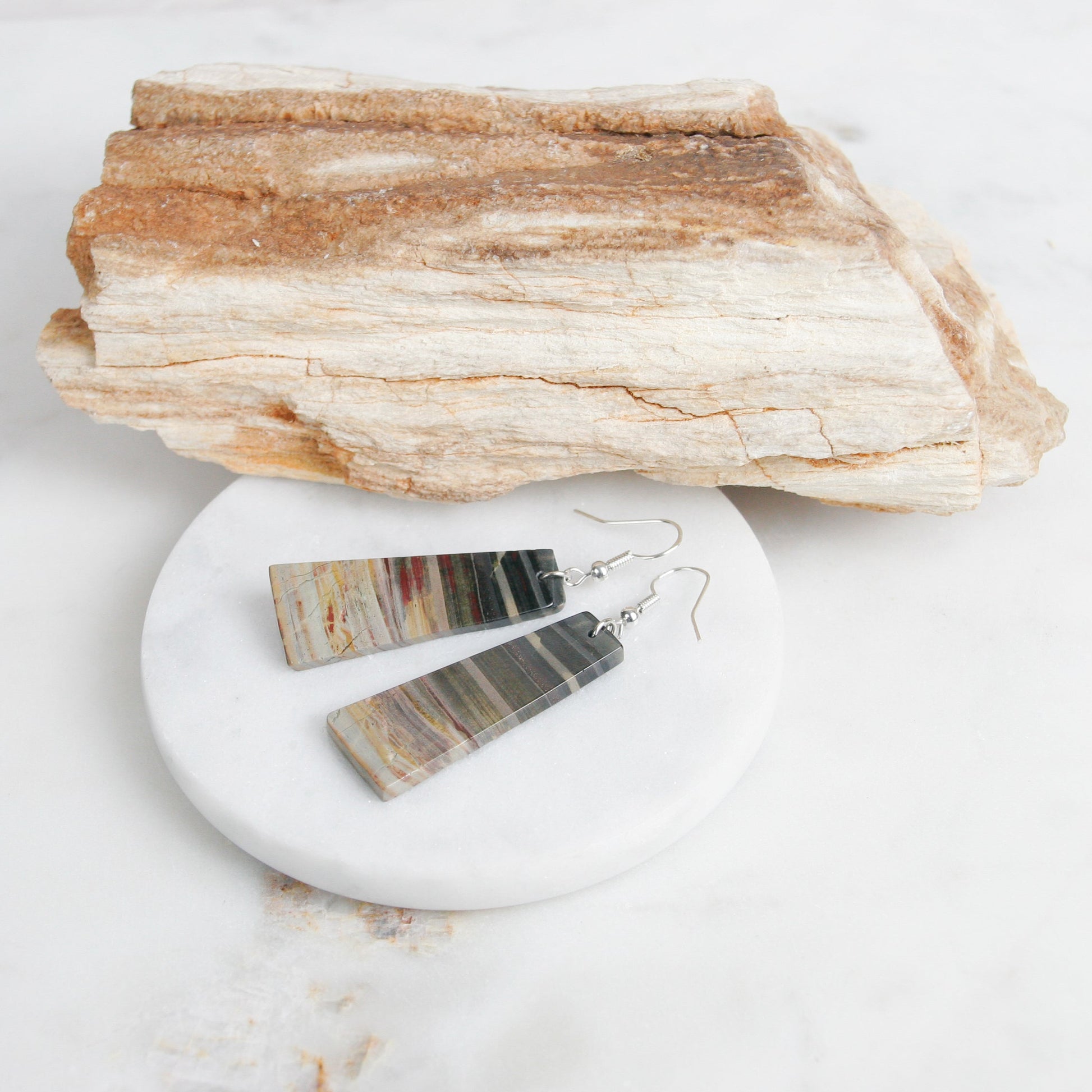 These Morrisonite Jasper Earrings features a unique, naturally patterned stone paired with handcrafted sterling silver. Each piece highlights the distinct beauty of Morrisonite Jasper, making every item one-of-a-kind. This combination of fine craftsmanship and exceptional gemstone quality offers a sophisticated accessory for those who appreciate expert artistry and natural elegance.