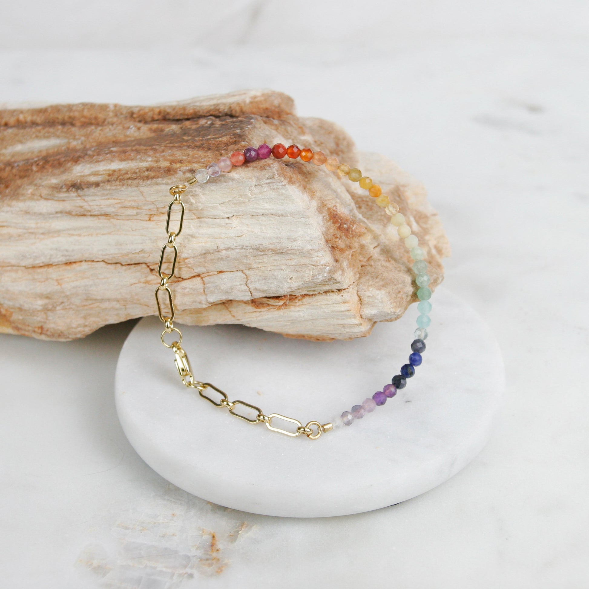 This Tourmaline Bracelet features vibrant faceted beads that catch the light with a subtle sparkle, enhanced by durable gold-filled hardware for lasting elegance. Expertly crafted, it combines the natural beauty of rainbow tourmaline with refined design, making it a sophisticated accessory suitable for both everyday wear and special occasions.