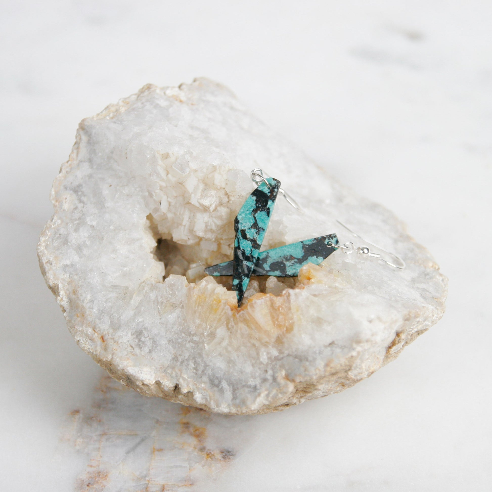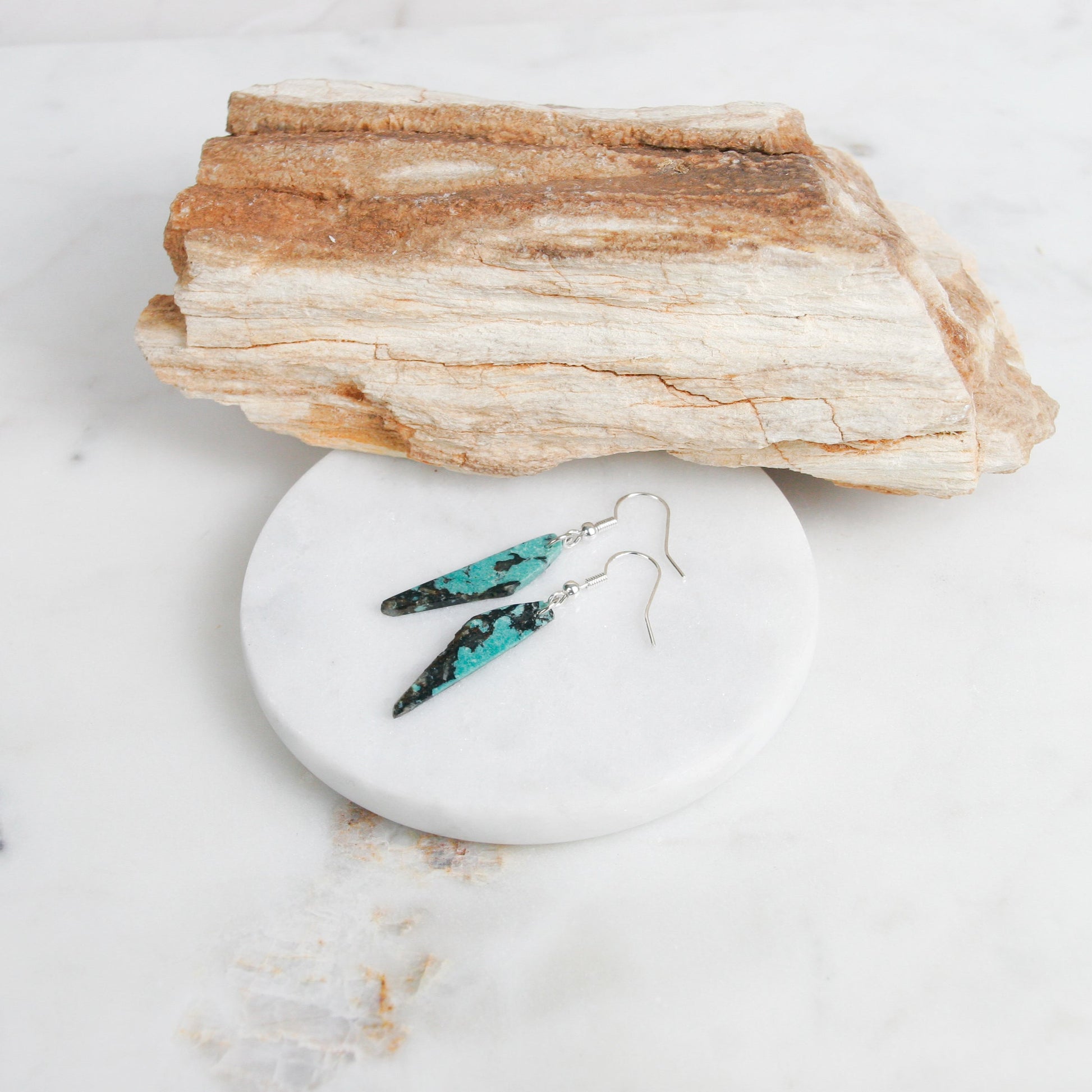 These turquoise sterling silver dangle earrings combine timeless elegance with a touch of vibrant color. Crafted from high-quality sterling silver, they offer a refined look that complements both casual and formal attire. The striking turquoise stones add a sophisticated pop of color, making these earrings a versatile accessory for any occasion.